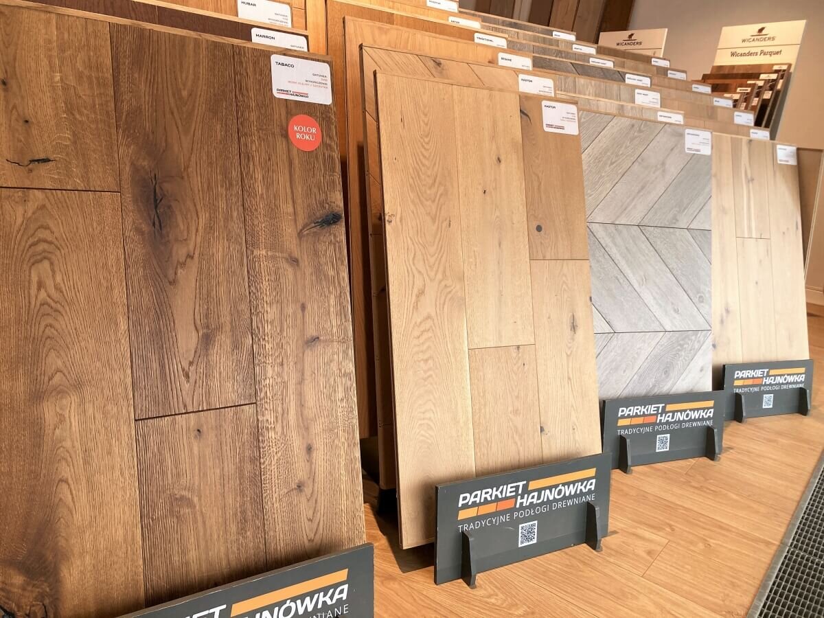 W naszej ofercie znajdują się piękne, wysokojakościowe podłogi drewniane z różnych rodzajów drewna. Najpopularniejszy jest dąb, jednak mamy także podłogi z drewna bukowego i innych. Znajdziesz u nas podłogi drewniane w najlepszym wyborze takich marek jak: Barlinek (Deska Barlinecka), Bory Polskie, Original Chapel Parket, Dąbex, Parkiet Hajnówka, Wicanders, Ipowood, Chapel, Walczak, Lareco, Jawor - Parkiet, Joka, Wiśniewski i Astfloor Discoveries.