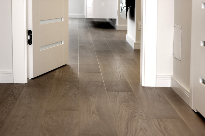 Ekskluzywny apartament w Opolu dopełniają piękne dębowe podłogi – deska Barlinek Dąb Marzipan Muffin Grande oraz oddające styl wnętrza – drzwi interdoor. Astfloor w przypadku tej realizacji odpowiadał za dobór koloru podłóg, naprawę podłoża, montaż podłóg, montaż drzwi oraz montaż listew.