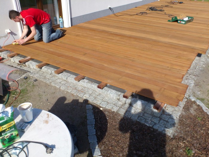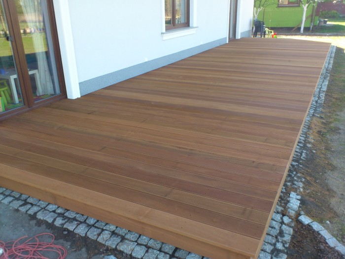 W ramach zlecenia realizowanego w Chmielowicach dobraliśmy kolor oraz zamontowaliśmy taras Bangkirai nowo wybudowanym domu jednorodzinnym.