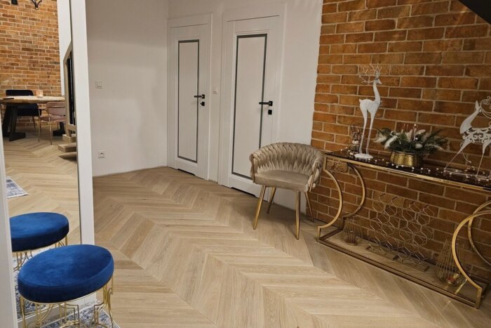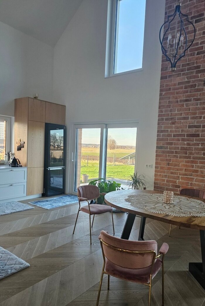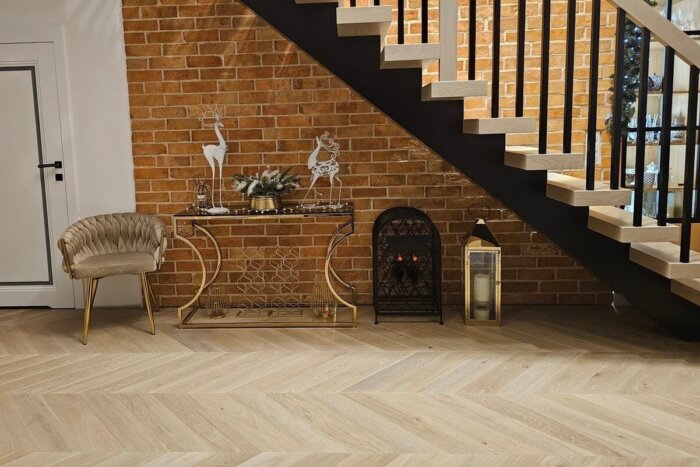 Ten dom w Bralinie w woj. wielkopolskim ma wiele uroku. Inwestorzy planowali go z wielką pasją. Ściany, meble, stolarka drzwiowa, dodatki. Wystarczy jednak spojrzeć na zdjęcia pięknych wnętrz, by przekonać się, że kluczową rolę w ostatecznym efekcie odgrywa podłoga drewniana. Nasi klienci zdecydowali się na podłogę drewnianą Walczak Vintage Dąb Oslo jodła francuska w klasie rustykalnej, faza V4 – szczotkowaną, pokrytą olejowoskiem. Podłoga zakupiona w naszym wrocławskim salonie zlokalizowanym w Alei Bielany (Bielany Wrocławskie). Montaż podłogi – wykonany przez montażystów Astfloor.