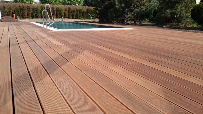 Nasza kolejna realizacja w Wysokiej koło Wrocławia opierała się na montażu pięknego ok. 200 metrowego tarasu. Taras Bangkirai idealnie komponuje się z architekturą budynku i dopełnia przestrzeń wokół basenu zewnętrznego.