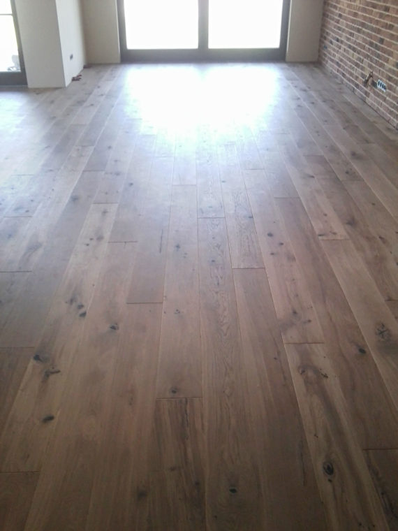 Wśród naszych najbardziej prestiżowych realizacji znalazły się apartamenty w najwyższym budynku Wrocławia – Sky Tower. Położyliśmy tam podłogi drewniane, które zachwycają pięknem, funkcjonalnością i trwałością. Wrocławski Sky Tower to miejsce łączące funkcje biznesowe, usługowe i mieszkalne. Właśnie tam należało postawić na najlepsze materiały. Nasza realizacja w apartamencie pokazowym oparta została o luksusowe, szczotkowane deski dębowe (dąb warstwowy olejowany, wyselekcjonowany, szczotkowany, faza czterostronna). Nim zamontowaliśmy podłogi, zajęliśmy się doborem odpowiedniego rodzaju, koloru i przygotowaniem podłoża. Po pięknie wykonanych podłogach drewnianych w tym położonym na 47. pietrze apartamencie ze wspaniałym widokiem na Wrocław, zamontowaliśmy kolejne podłogi drewniane w Sky Tower. Tym razem oczarowani inwestorzy postawili na jasny dąb (dąb warstwowy, biały olej, rustykalny, szczotkowany), który wspaniale rozświetlił przestrzeń apartamentu.