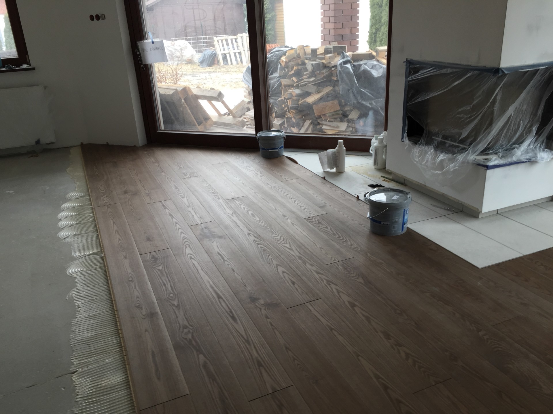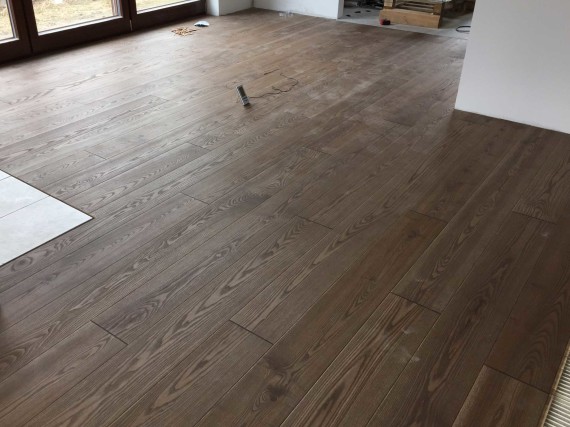 W nowo wybudowanym domu naszego klienta w Kluczborku położyliśmy (montaż klejony) ok. 70 m2 deski jesionowej o ciemnobrązowym zabarwieniu. Wykorzystaliśmy serię desek trójwarstwowych Barlinek Jesion Hazelnut. Dekoracyjne rysunki słojów oraz szczotkowanie zdecydowanie dodają podłodze unikalnego klimatu.