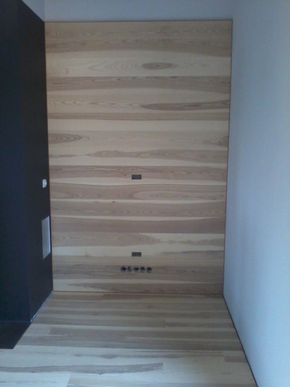 Realizacja zlecenia w Żłobiźnie polegała na doborze koloru podłogi, montażu podłogi, niecodziennym montażu podłogi na ścianie oraz montażu listew. Pokryliśmy 115 m2 deską Barlinek Jesion Milkshake Grande.