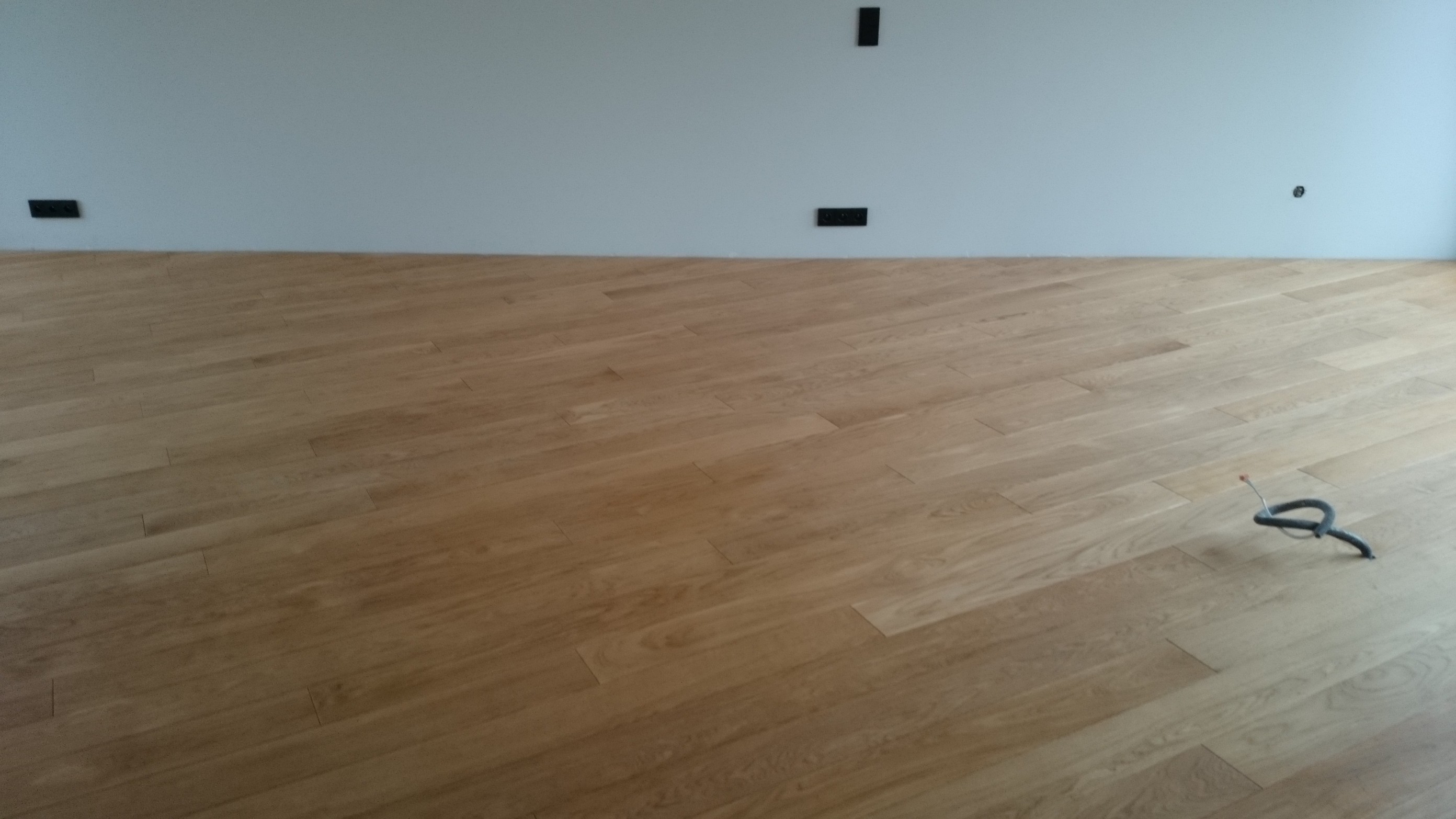 Podłoga dębowa nie pasuje do każdego pomieszczenia, jednak w przypadku tego klienta sprawdziła się idealnie. Wykorzystaliśmy deskę dąb lity olejowany, wyselekcjonowany i szczotkowany. Astfloor odpowiadał za przygotowanie podłoża, dobór koloru podłogi oraz przyklejany montaż desek w układzie diagonalnym.