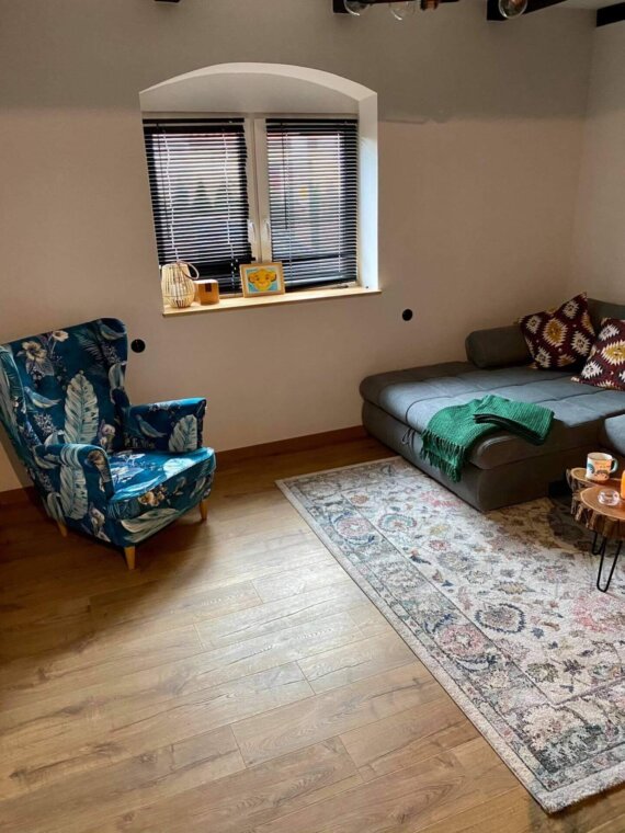 Para pasjonatów atrakcji Wrocławia prywatnie postawiła na spokój decydując się na mieszkanie na nowym osiedlu u zbiegu dwóch dzielnic – Gaj i Tarnogaj. Tutaj postanowili stworzyć nowoczesne, acz pełne ciepła i nonszalanckiej elegancji mieszkanie dla siebie i trzeciego domownika – królika. Postawili na podłogę marki Walczak, w kolorze Pure, olejowosk, szczotka, klasa Country, szerokość 20
