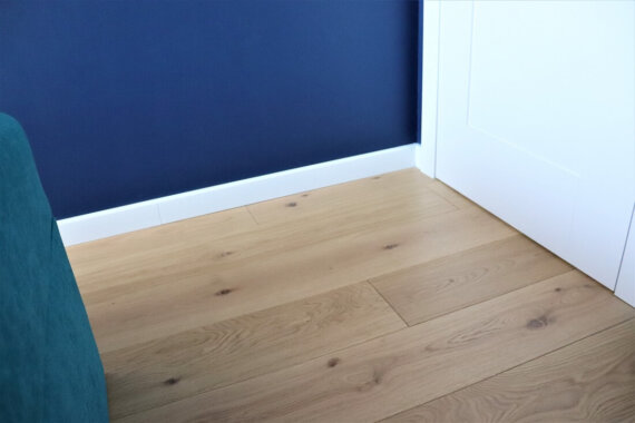 Panele laminowane Wineo 500 Smooth Oak to kwintesencja eleganckiego, współczesnego, stonowanego dekoru dębu. Wyróżniają się ponadto jedwabisto-matową powierzchnią. Podłoga została zakupiona salonie Astfloor, zlokalizowanym w budynku Odra Tower w centrum Wrocławia. Nasi montażyści zamontowali je w 70-metrowym mieszkaniu z antresolą w nowym budynku na osiedlu Maślice (Wrocław). Ponadto zastosowaliśmy białe, wykonane z MDF o wysokości