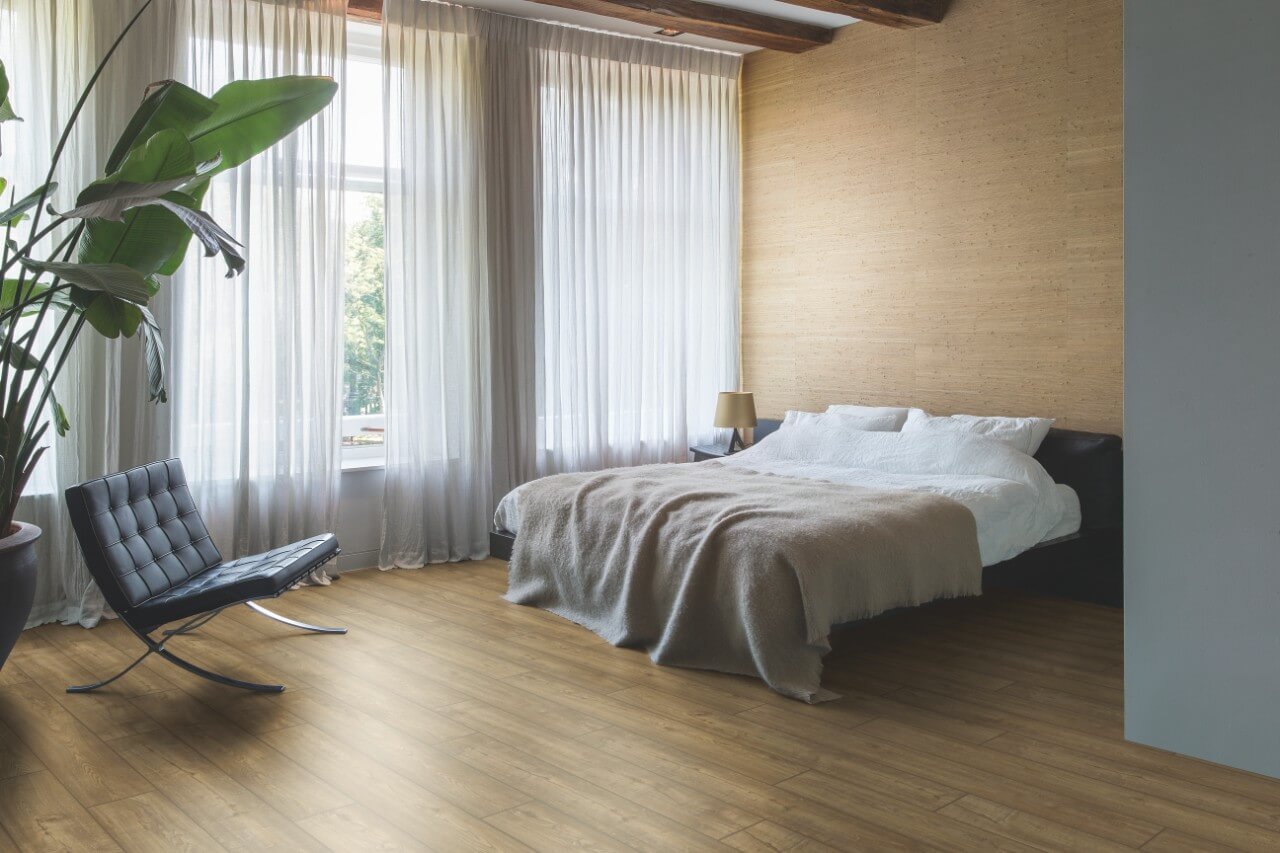 Montaż paneli prostopadle do okna to jeden z najczęściej stosowanych układów, który wywodzi się jeszcze z początków paneli na rynku. Otóż nie było wtedy v-fugi (rowka w kształcie litery V pomiędzy panelami), a oferowane panele były marnej jakości (na łączeniach powstawały wybrzuszenia, które przy położeniu równoległym do okna były bardzo widoczne. Jedynym sposobem na dobry efekt końcowy, w którym nie widać łączeń, okazywał się montaż prostopadły do okna. Jak jest dziś?
